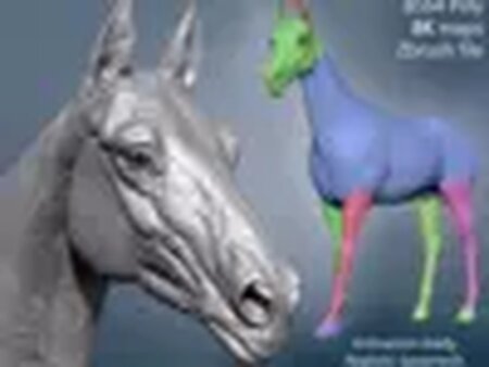 Horse model has 7 subdivision level from 7412 poly to 30 355 000 polySculpt Fully Symmetric, with comfortable separated polygroups, that you can select easly parts what you wantAll parts fully unwraped,