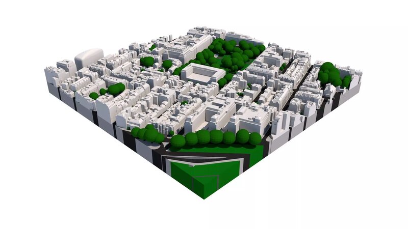 Level 2 Medium Detail 3D Models of London are available for sites anywhere within the the M25 motorway corridor. This 500 x 500 meters section of London includes north end of Buckingham Palace Garden, The Royal Mews and parts of Victoria Station and Eaton Square. Ideal for local shots CGIs, games and TV/News production. Fully modular with our 25 km2 Base 3D Model of London.