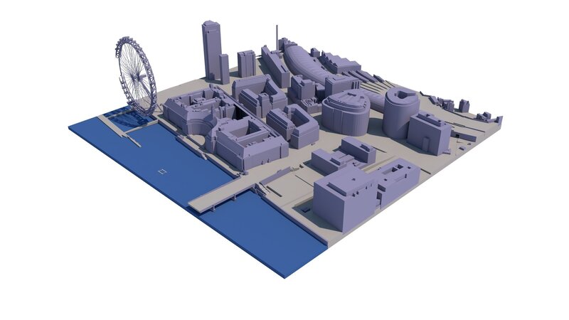 Level 2 Medium Detail 3D Models of London are available for sites anywhere within the the M25 motorway corridor. This 500 x 500 meters section of London includes north end of Buckingham Palace Garden, The Royal Mews and parts of Victoria Station and Eaton Square. Ideal for local shots CGIs, games and TV/News production. Fully modular with our 25 km2 Base 3D Model of London.