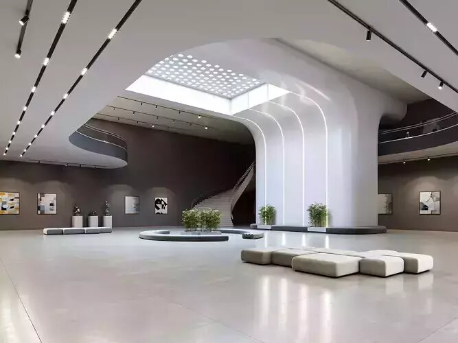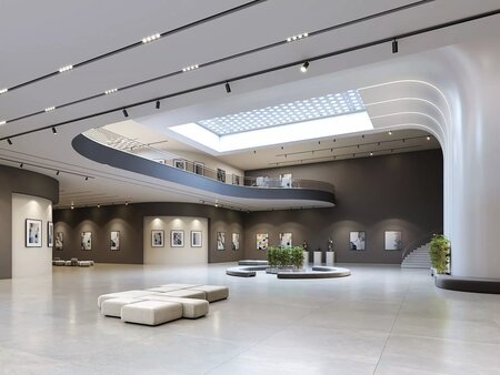 This scene is ideal not only for showcasing art and exhibitions, but also as a multi-purpose modern space suitable for VR walkthrough, design visualization, or conceptual renders.