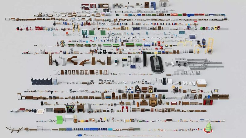 Contained in a Pack (x2000) :Bed, Chair, Wheel Chair, Sofa, Couch, Stool, Table, Bench, Kitchen, Cup Board, Food, Coffee Machine, Lamp, Cup, Basket, Vending Machine, Generator, Clothes, Plant, Cylinder, Church Furniture, Smoke Pipe, Bottle, Tool Box, Sofa, Alarm, Document, Fire Extinguisher, Ice Cream Machine, Toaster, Kettle, Blender, Fridge, Refrigerator, Music, Radio, Headphone, Monitor, Speaker, Television, Player, Type Writer, Fax Machine, Printer, Modem, Camera, Green Screen, Cash Machine, Telephone, Pool Table, Table Tennis, Treadmill, Football. Basketball. Helmet, Golf, Fishing Rod, Luggage, Skateboard, Antique Vintage Furniture, Kids Props, Casino Table, Christmas, Subway, Airport, Cabinets, Bathroom, Fireplace, Restaurant, Hospital, Warehouse, grocery, garage and many more.......